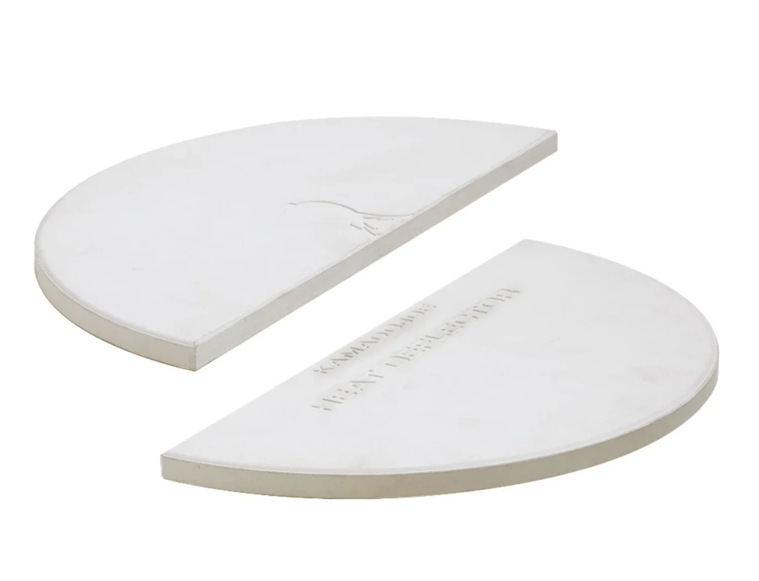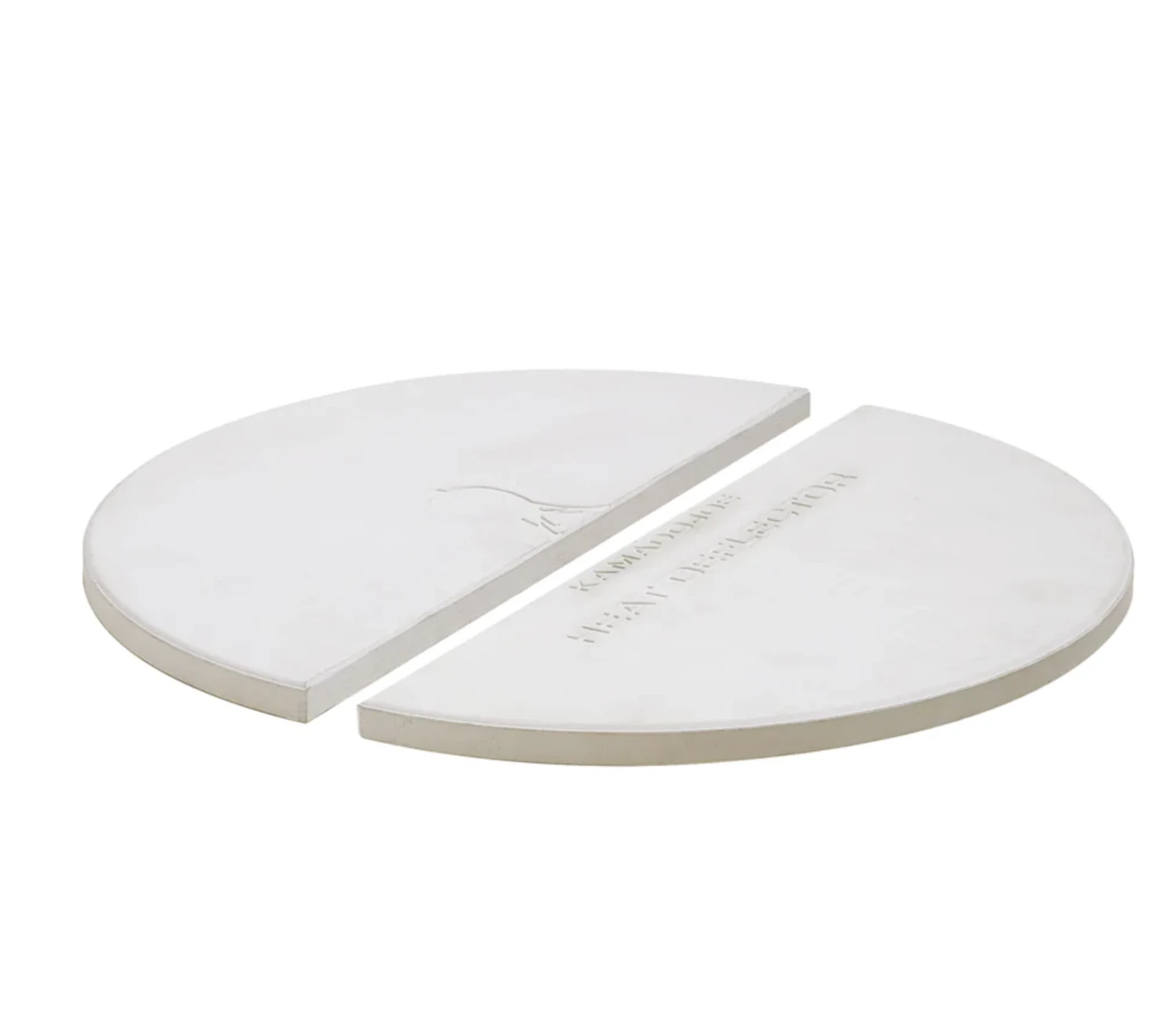 De Heat Deflector stenen zorgen voor de creatie van verschillende warmtezones in jouw Kamado. Door het geheel of gedeeltelijk blokkeren van de directe warmte van het houtskool ontstaat een indirecte warmte bron, een indirect open vlam.