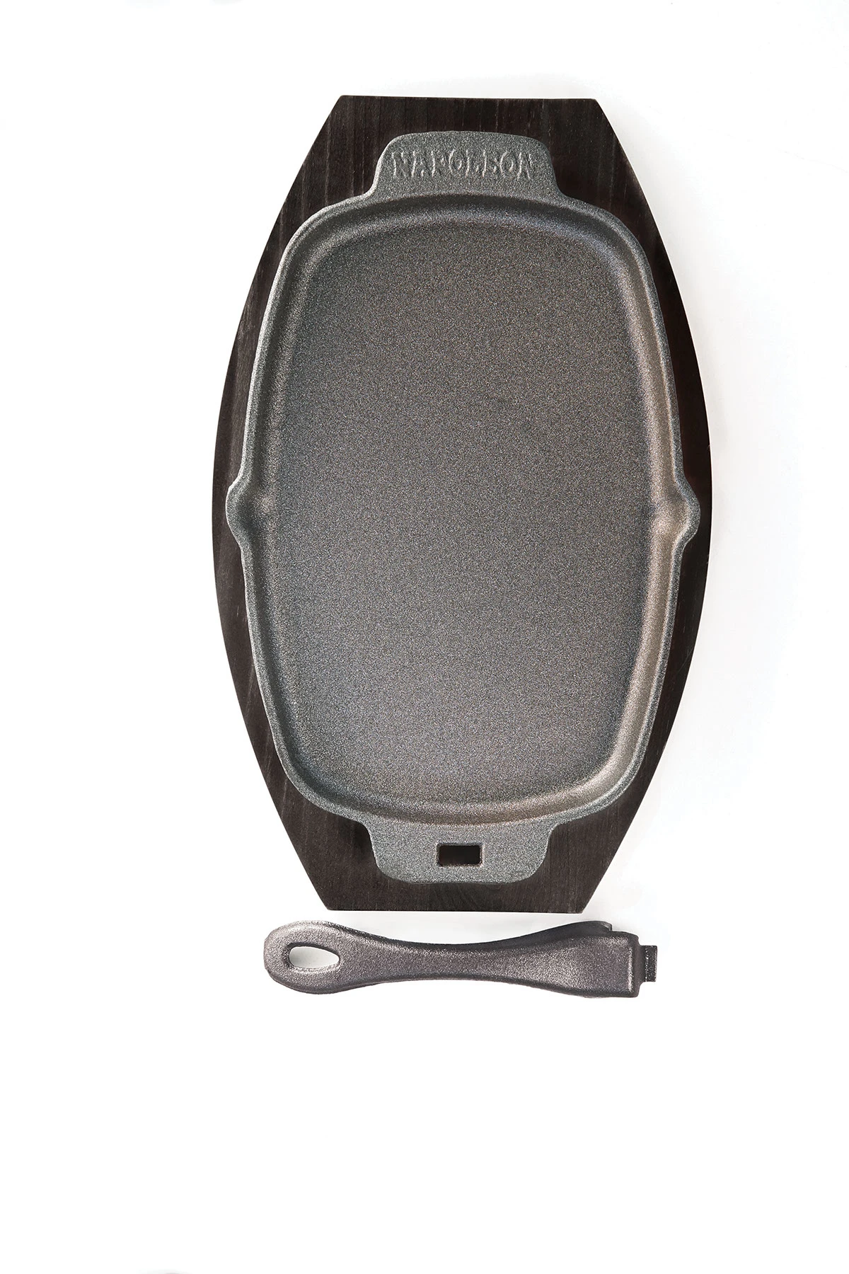De pan heeft een afneembare handgreep en wordt geleverd met een onderzetter.