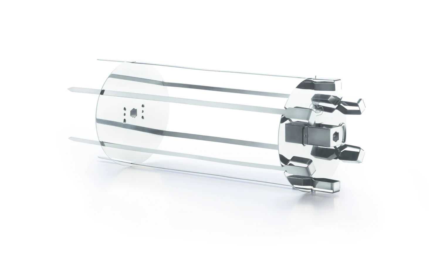 Deze set past op alle rotisseries en maakt het mogelijk veel om veel verschillende producten op je spit te bereiden, zoals vis of vleesspiesjes maar ook lekkere groente spiesen. Doordat de spit draait worden de ingrediënten gelijkmatig gegaard zonder dat je er een vinger naar uit hoeft te steken.