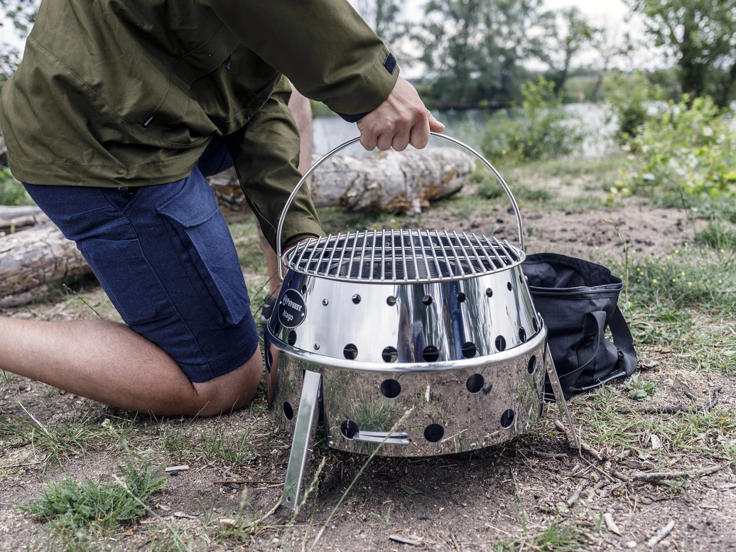 Plaats het grillrooster op de Atago. Het grillrooster is verstelbaar, zodat je de hoogte kunt aanpassen aan de hitte van het vuur.