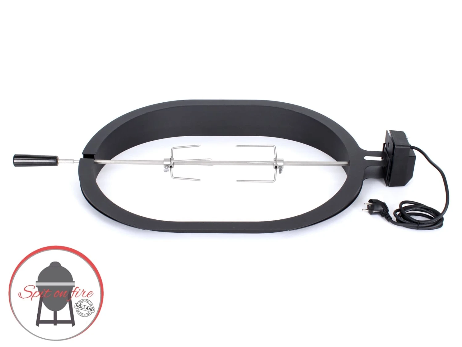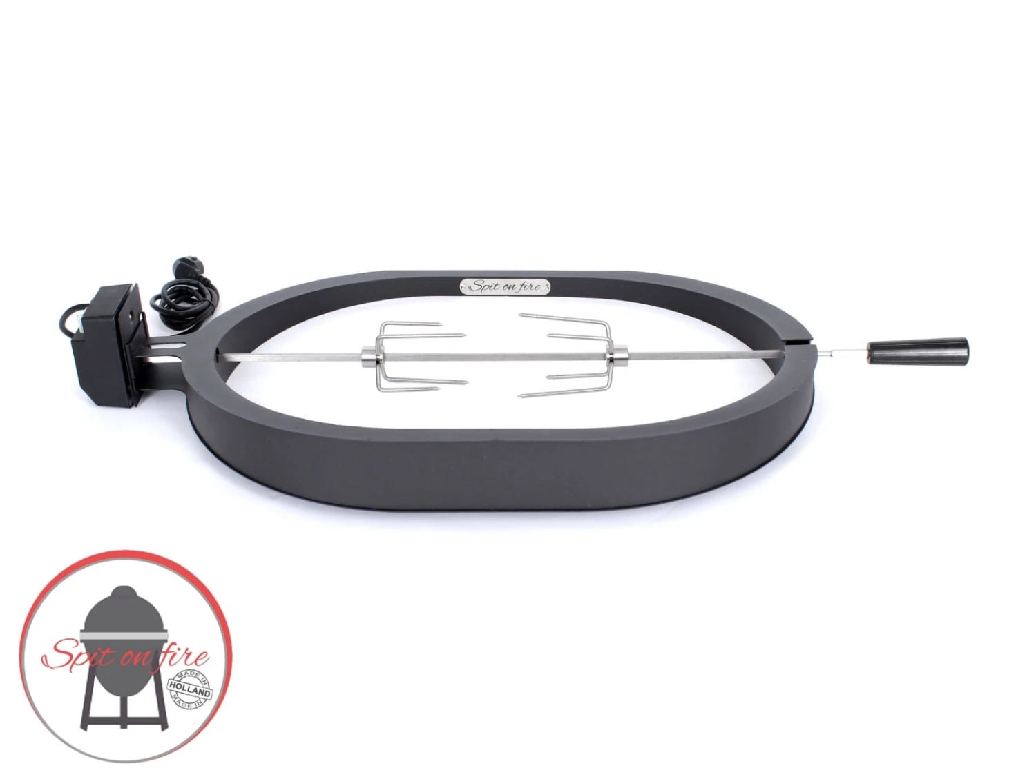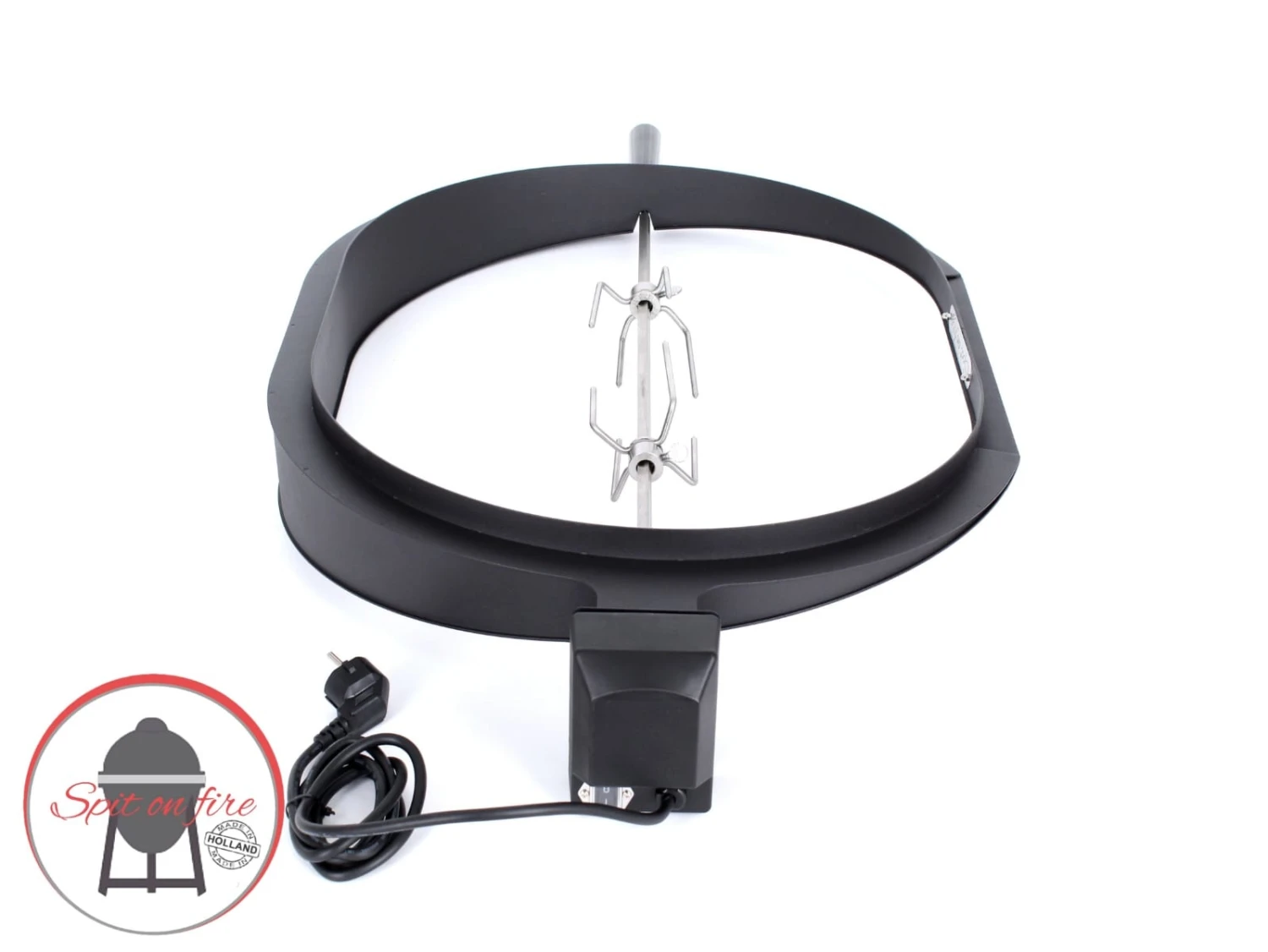 Spit on Fire is een universele rotisserie bestaande uit een RVS Spit en een 4 Watt krachtige elektrische motor. De Spit en de motor zijn geruisloos. En uitermate geschikt voor het grillen van kip, hoenderen, kalkoen of bijvoorbeeld Argentijnse Picanha steaks.
